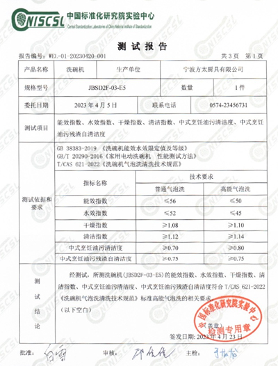 2022年,方太联合中国家用电器研究院发布首个《洗碗机气泡洗清洗技术规范》,此次举办的媒体沟通会上,方太水槽洗碗机新5系又通过了中国标准化研究院完成技术验证,经由严苛的技术测试和实效检验,测试结果最终为,能效指数50、水效指数45、干燥指数1.29、清洁指数1.24、中式烹饪油污清洁度0.87、中式烹饪油污残渣自清洁度0.77,各项指标均符合要求,其中干燥指数、清洁指数均高于国家一级水效标准基数,且对中式烹饪油污的清洁效果显著。