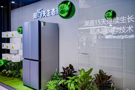 在冰箱方面,康佳极光系列•双15天生态原鲜冰箱搭载了温、湿高精度智能传感器,能够实时感知食材温、湿变化,一方面可通过冰点精准控制,程序性变温打断肉类冻结过程,实现15天微冻易切;另一方面可智能匹配最适宜的温度与湿度,抑制细胞新陈代谢,维持细胞活性,锁住VC和花青素,使细胞处于有序的静态运动,实现果蔬15天继续生长。