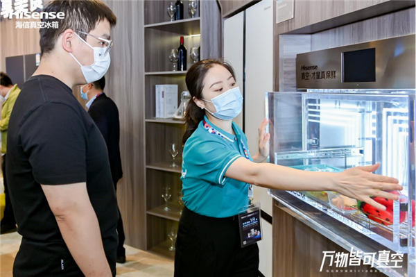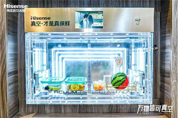 在美食生活体验区内“坐镇”的是即将发布的海信真空璀璨503冰箱,它搭载了全新真空休眠科技,助力用户品质生活。冰箱门体设有真空装置,用户可以根据不同食材体量可自行搭配真空袋或真空盒,无论备菜还是食物腌制,都更快更保鲜。同时其兼具内在与外观,三侧零嵌与整体家装融为一体,真正的做到隐形嵌入,正面不突出,侧面不留缝。