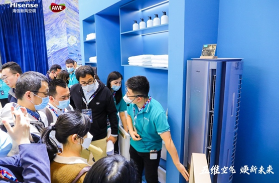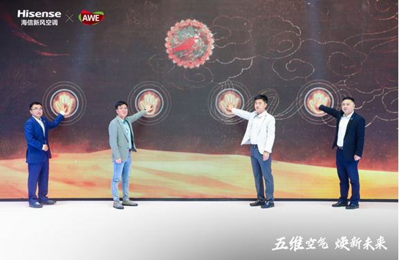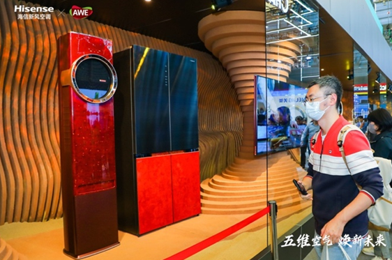 4月27日,以“五维空气焕新未来”为主题的海信新风空调璀璨系列“五维空气管家”战略发布暨新品鉴赏会在上海AWE家博会正式发布,海信新风空调首发以用户为核心理念的“五维空气管家战略”,同时推出“融合东方技艺与现代设计”的非遗元素定制璀璨新品空调,展会人潮涌动,灿烂绚丽的东方古韵引发业界关注。