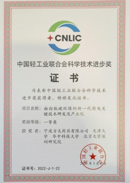 方太再次斩获中国轻工业联合会科技进步一等奖