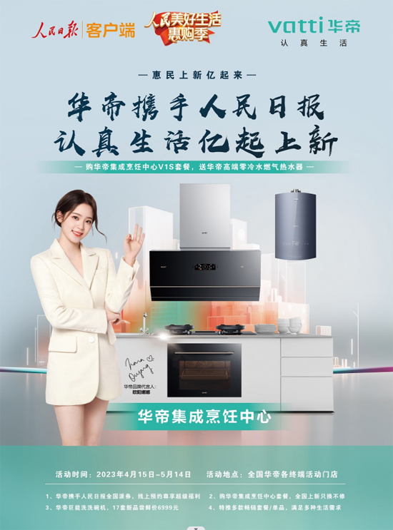 扣准时代潮流机遇点,华帝洞悉经济复苏发展大势,积极响应国家促消费的号召。在五一装修黄金季来临之际,华帝特别携手人民日报客户端强势推出人民美好生活惠购季活动,在4月25日-5月14日期间,面向全民重磅派发1亿元消费券,为广大消费者美好生活助力。此次活动涵盖华帝多款厨电产品,全国消费者通过线上预约领取大额消费券及华帝集成烹饪中心V1S套餐赠品券,在华帝各终端活动门店内,凭消费券码及赠品券可享受相应消费优惠福利。