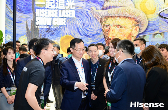 在显示行业,海信通过ULED X技术平台和激光显示技术持续引领整个行业,探索影像画质和用户观看体验的极限。本次展出的110英寸8K Mini LED电视UX,采用行业最高级别的画质技术,是海信独有的行业最大尺寸家用平板电视,带来最极致的画质享受和最沉浸的观看体验;120 LX是海信刚刚发布的全球首款8K全色激光电视,让8K图像解码首次进入到激光电视赛道,全色光源色彩表现力高于传统电视2-3倍,是目前电视产品中色域最高的产品。