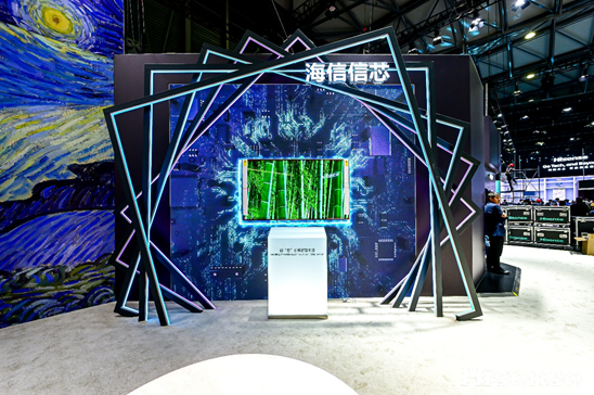 海信大显示产业的技术基石——芯片,也在AWE展上惊艳亮相。信芯微公司集中展示了5种18枚芯片,包含时序(TCON)控制芯片、画质芯片、IOT系列芯片和智能SoC芯片等。今年首次加入海信大家庭的乾照光电,也首次亮相AWE,对外展示了紫外杀菌UVC LED芯片、新型显示Mini LED和Micro LED芯片、植物照明LED芯片以及柔性太阳能电池等产品。