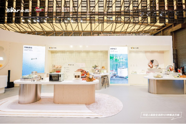 在2023 AWE展会现场,小熊电器打造6大沉浸式生活场景,既有烟火气十足的厨房场景,象征诗与远方的露营场景,Z世代父母“躺平”式育儿的母婴场景,以及还原理想生活的居家场景,随时赋予职场灵感的办公场景,“悦己”更精彩的一人食场景。可以说,小熊把“有想法,玩出花”的理念发挥到了极致,展示了多款代表小家电行业科技风向标的明星产品,也传递有创造力的、精致的生活方式。