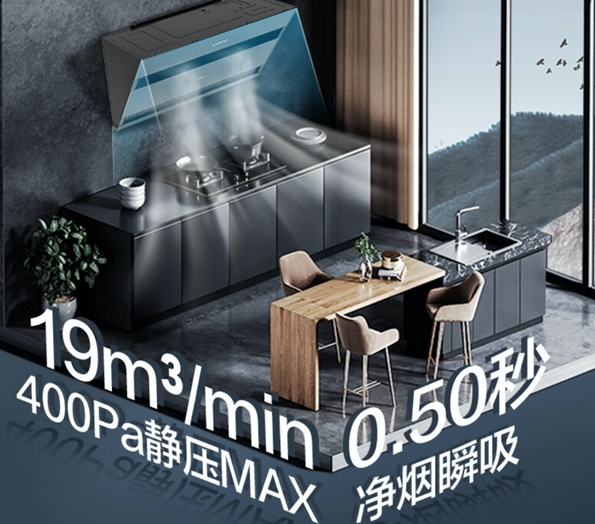 除了强效拢烟效果,优越的风量也是一款高品质油烟机的标配。海信905A油烟机搭载负压近吸仓,450Pa的大风压,能精准阻击厨房的每一处油烟。如果说让油烟无处可逃是905A油烟机的“基本功”,那瞬吸效果足以让每一个体验者咋舌,尤其面对晚饭高峰期门窗紧闭的情况,猛火爆炒时油烟瞬间充满整个厨房,对开放式厨房来说更加“不友好”。基于此,海信905A油烟机采用19m³/min爆炒大吸力,仅需0.50秒就能实现整个厨房空间的净烟效果,大吸力、秒净烟,双管齐下,为用户打造无烟清新的掌勺环境。