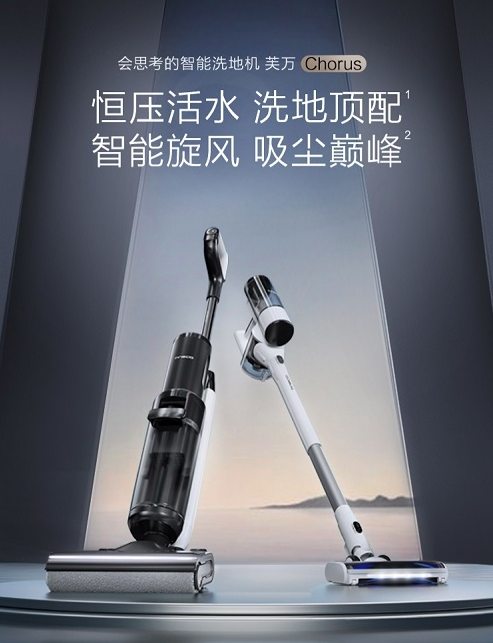*最强:指对比添可历代产品,芙万Chorus在洗地、吸尘、全无除尘、自清洁、过滤、防缠绕等性能上有全新突破和大幅升级。