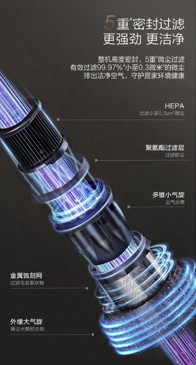 *巅峰:指对比飘万其他型号吸尘器,本次新品在吸尘、过滤、防缠绕等功能上有全新突破和大幅提升。