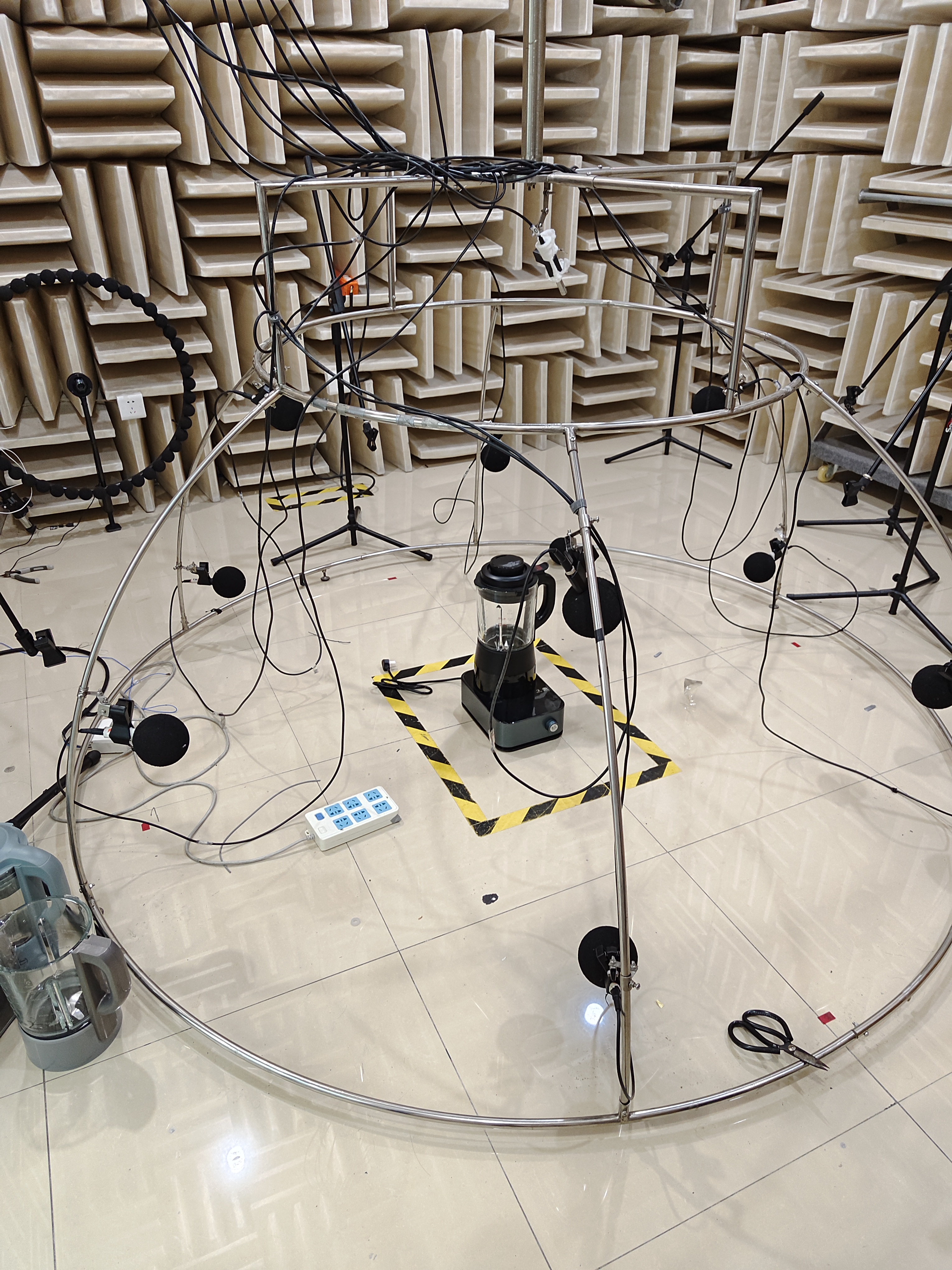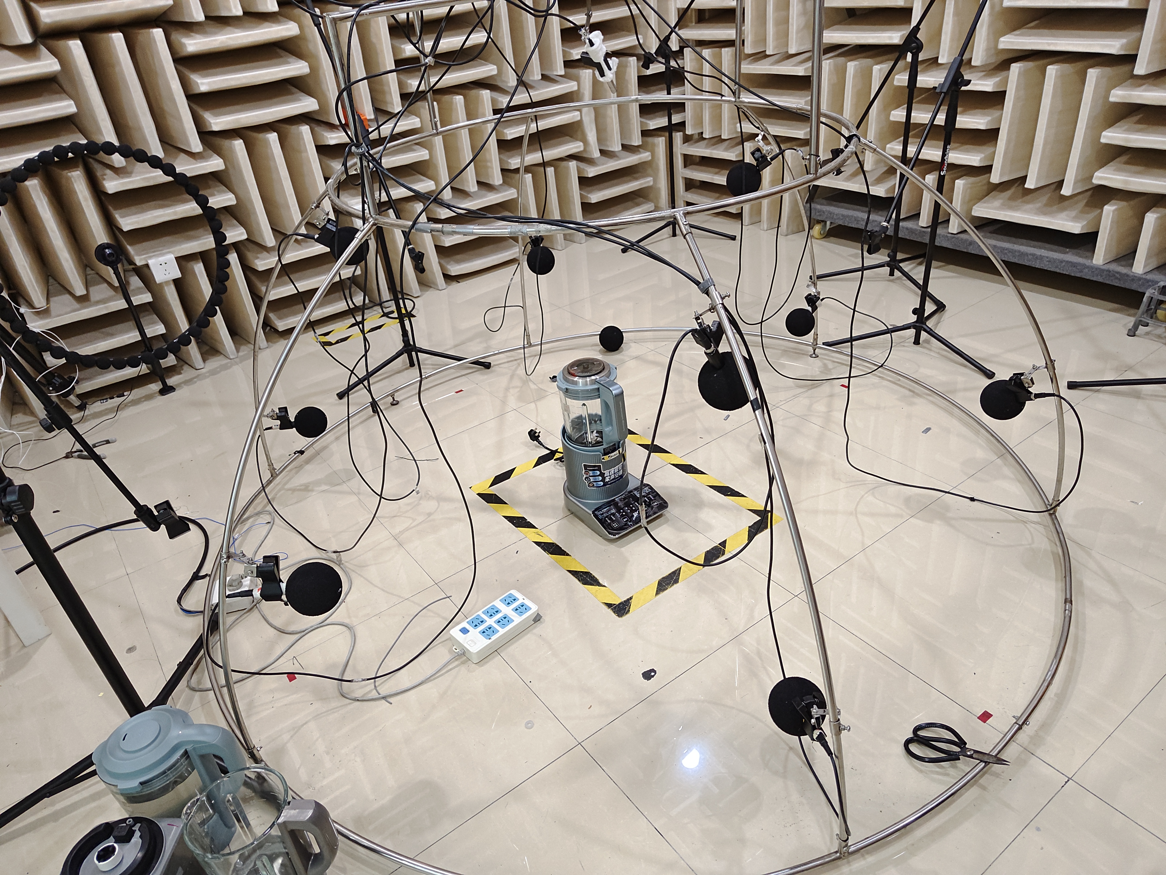 Round1:降噪大PK 就以我们日常最常用到的“打豆浆”作为第一个pk项目。测试方法是,距离声源1.5m处,进行10个方位(每个方位间隔36°)的噪音测试。测试点为噪音测试房,其设计标准:ISO3745,符合中国家用电器研究院标准。