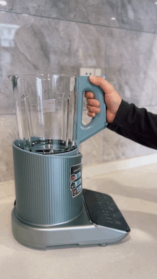 带罩破壁机是一体化破壁机(电机和杯子连在一起),拿取的时候杯体非常沉重,对女性用户非常不友好,但是美的人感科技•轻静感安睡Pro Max破壁机采用分体杯体,电机下沉到底座,杯体更轻。