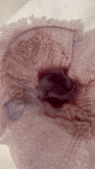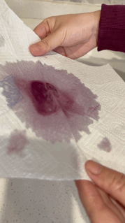 第二轮,我们用两款破壁机分别搅打紫薯,再将搅打后的饮品倒在厨房纸上,看是否有渣渣。