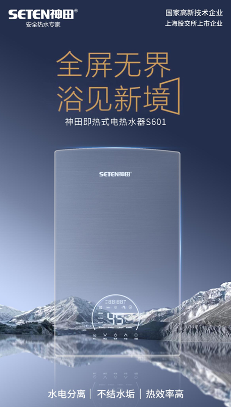 S601采用神田一号QST硅晶非金属6核加热,水电分离,不结水垢,具备防漏电、防超温、防超压、防干烧、故障自检多种安全保护。神田一号QST硅晶第二代非金属发热技术是神田的专利技术,热启动快,2秒出热水,热效率高达98.6%。耐腐蚀,热稳定性好,综合性能领先于铸铝发热体。