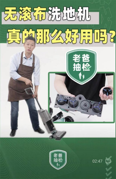 也许很多读者还是疑惑,在滚布洗地机占据主流的当下,这种没有布的洗地机究竟在清洁力上面表现如何?5月17日,老爸评测发布的视频可能算是一种参考答案。