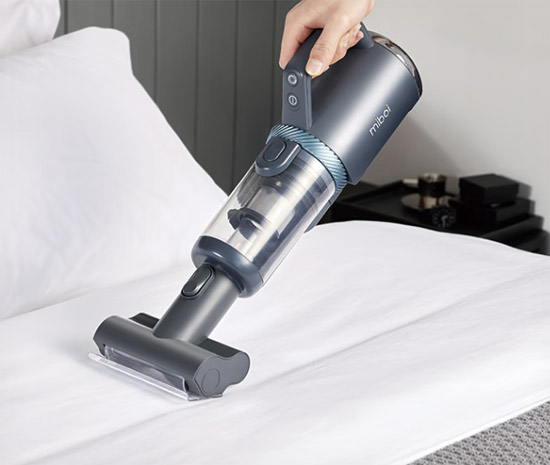 此外,米博Q7洗地机还采用可分拆的干湿分离结构,在需要时可以将干垃圾清扫部分单独拆分,使其能够清洁的区域不止于地面,即使是床铺、高处、沙发等位置都可以轻松清扫。