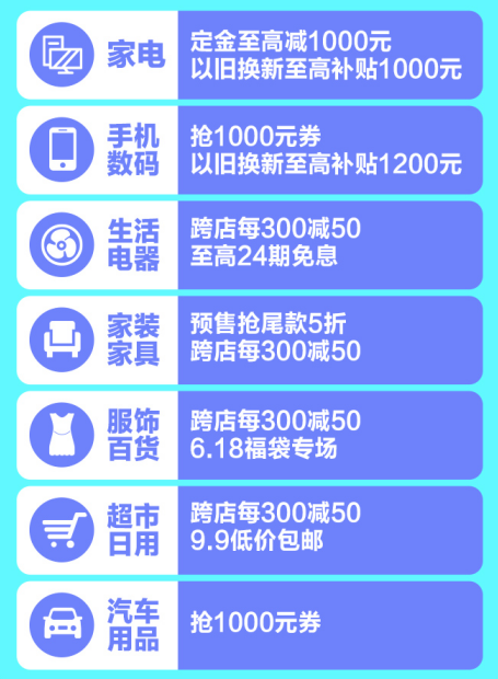此外,在苏宁易购成套购买家电、家装,两件以上在所有优惠基础上再打97折;跨店购物每满300减50;参与以旧换新活动,补贴再提高25%,手机数码以旧换新补贴至高1200元。