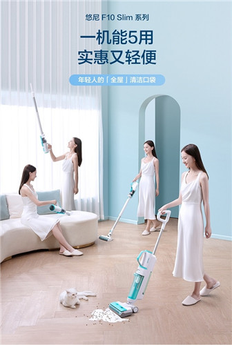 而悠尼F10是悠尼首款“出圈”产品,作为去年618“洗地机自由计划”的主角,率先打破了洗地机价格高的固有印象,让年轻人看到了悠尼的实力与诚意。在清新时尚的外观之下,悠尼F10拥有完备的吸拖洗与一键自清洁功能,自牵引力的加持让产品更加物有所值。3.35kg的超轻机身,让整体更轻盈,女生单手提拿也毫不费力,特别适合追求颜值与性价比的单身贵族。