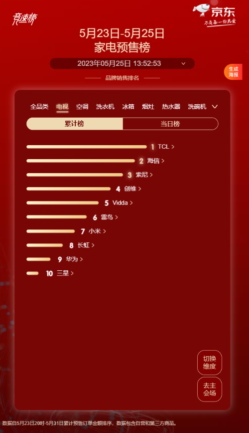 总的来说,一款好的电视产品,它不仅要画质硬件足够优秀,同时在软件方面也应该有足够丝滑的使用体验。刚看了一下电视预售榜,TCL排名第一,像TCL这种在画质硬件表现方面十分突出,并且也很重视消费者反馈的厂商,无疑是值得优先考虑的。