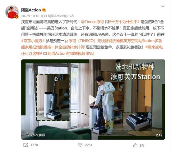 原创视频博主“阿诺Action”则通过视频全方位展示洗地机新物种添可芙万Station的独特魅力,另辟蹊径从品牌理念和创新科技的角度对产品进行了更深层次的解读,“自动上下水,不倒污水不脏手”、“拿起就能用,放下不用管”,让许多粉丝和路人都被“种草”。