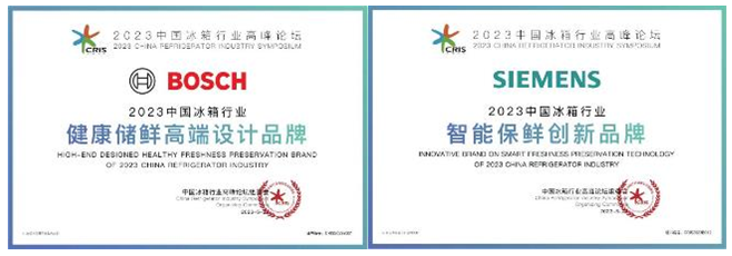博世家电和西门子家电分别获评2023中国冰箱行业“健康储鲜高端设计品牌”和“智能保鲜创新品牌”