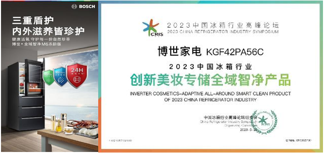 博世∙全域智净M6冻龄版KGF42PA56C荣获“2023中国冰箱行业创新美妆专储全域智净产品奖”