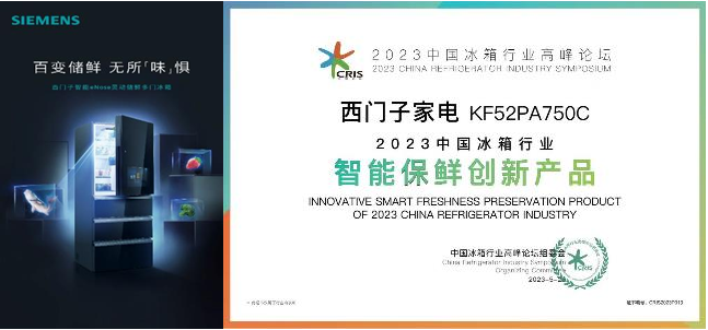 西门子智能eNose灵动储鲜多门冰箱KF52PA750C荣获“2023中国冰箱行业智能保鲜创新产品奖”