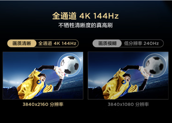 当然,此前备受好评的4K 144Hz真高刷也同样保留了下来,这里需要强调的是,T7G的真高刷是从接口到芯片,再到算法,最后物理屏幕,实现了全通道4K 144Hz真高刷,全程无短板。相比市面上其他一些伪高刷的方案,TCL T7G则能更好地还原足球比赛中的细节,足球运动轨迹不拖尾,球员的盘带动作不用回看也能看的很清晰,带来不牺牲清晰度的真高刷体验。