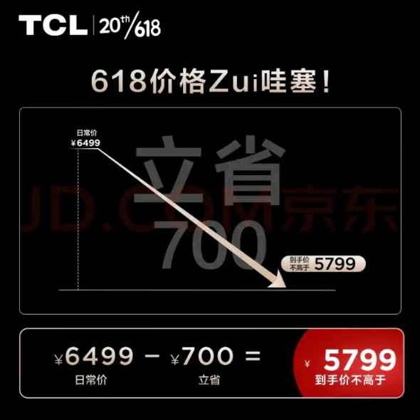 总的来说,如果比较追求质价比,希望获得一个出色的电视画质体验,尤其是在看类似球赛这种高速运动比赛时更有临场感,作为球迷、影迷入手TCL T7G会是一个很不错的选择,它的百级背光分区和1000nits峰值亮度,可以说是同价位没一个能打的。而且618预售已经开启,相比平时能省六七百,前100名还有机会抢5折,最近有购买需求的朋友不妨关注一下。