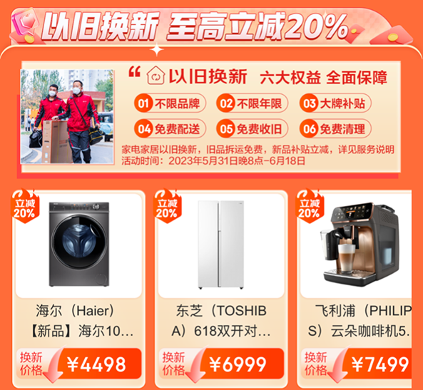 虽说家电家居产品是必需品,但花钱的时候更要学会“省钱”。其中,以旧换新就是一个不错的“省钱”方式。据了解,京东家电家居以旧换新服务,涵盖不限品牌、不限年限、大牌补贴、免费配送、免费收旧、免费清理六大权益,全面保障了用户的权益。618期间,凡是通过以旧换新方式购买家电家居产品至高补贴20%,而且可实现送新取旧一步到位,无论是五六层没有电梯的居民楼,还是重量近100公斤的冰箱,或者“大块头”的旧床垫,京东都坚持贯彻免费上门、免费拆旧、免费搬运的“三免”政策,让用户以旧换新无后顾之忧,全方位提升了服务体验。