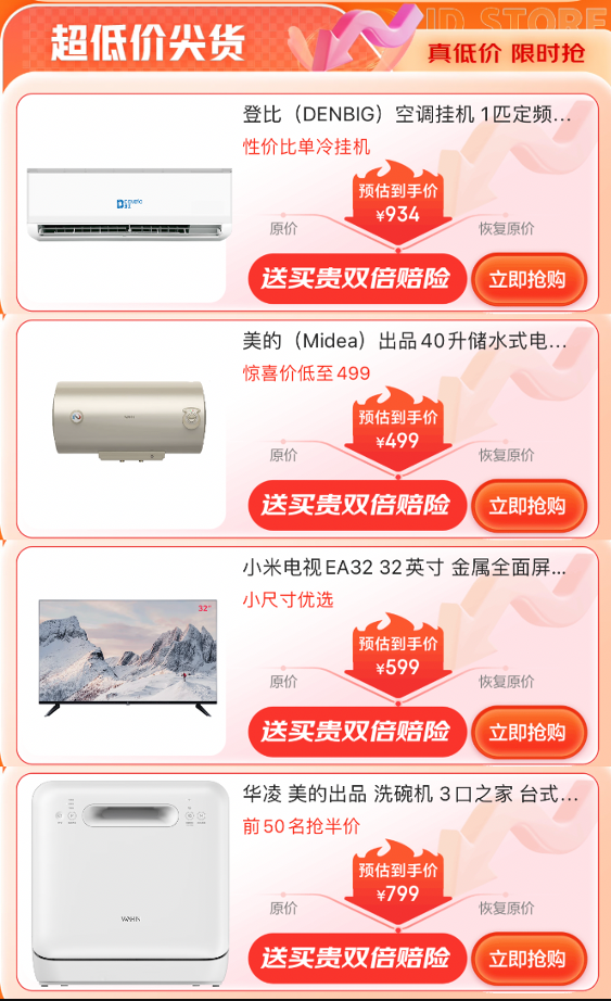 网购价格波动快,如何更大限度保障自身权益成了消费者更关心的问题。为给用户带来更物超所值的购物体验,京东家电家居在“省钱”方面下足了功夫,除了集结各大品牌厂商带来多款新品、爆品外,还为用户带来“买贵双倍赔”服务,凡是满足条件的产品出现非最低价情况,用户可申请双倍赔付差价。此外,部分产品还支持30天价保,购买商品的30天内,用户可通过一键价保查看自己是否买贵,一旦买贵将会自动退差价。不管是买贵双倍赔还是30天价保,京东家电家居都从用户出发,满足用户对极致服务的追求。