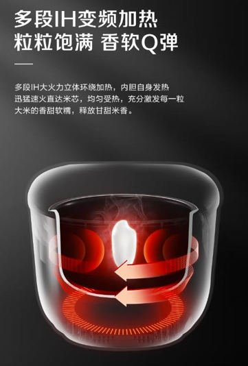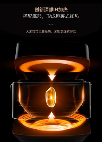 美的小赤炎是美的最新一代电饭煲,各种高科技加身。很多电饭煲都在使用IH加热系统,但美的是全包裹式IH加热系统,不仅锅底加热,还有顶部加热,形成了机身内全方位无死角加热IH。这样的加热方式,可以让每粒大米都充分受热,激发出米饭深层香气。此外,小赤炎饭煲还有特殊的机盖设计,能产生131℃超高温是“赤炎板”,将上升的热气“反射”回下部,对米饭进行二次补炊,坚决不放过一粒漏网之“米”让整锅米饭口感一致。而且盖板加热能够蒸发水气,让盖内无水汽附着,可以实现开盖无回流水,避免打湿米饭,影响米饭的口感。