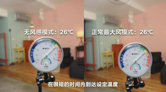 和沈先生的沟通过程当中,我们发现他对无风感功能的使用还有一些担忧,觉得开启无风感风量就会小,担心影响制冷效率,于是我们继续针对制冷速度进行了测试。