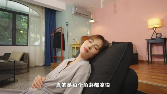 针对蒋女士的问题,我们为她推荐了五星舒适认证的美的风尊挂机空调。与旧空调不同,它有一个180°旋转导风板,送风的角度更广,在制冷时可以实现向上贴顶风制冷,自然降温,配合750m3/h大循环风量,可迅速实现全屋凉感覆盖。