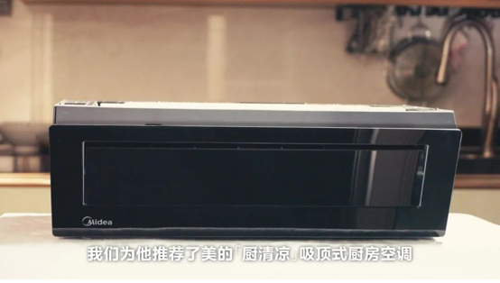 针对魏先生的问题和他的厨房环境,我们为他推荐了美的「厨清凉」吸顶式厨房空调。