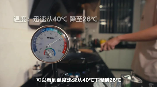 安装厨房空调当然首先就是要给厨房降温,所以我们首先测试了美的「厨清凉」吸顶式厨房空调的制冷效果。