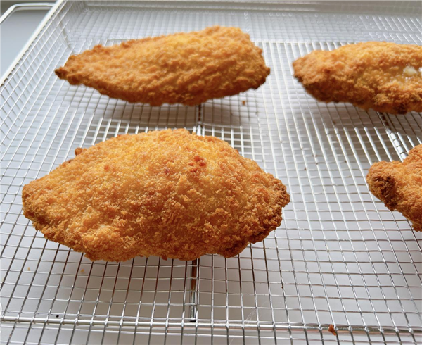 新鲜出炉的爆浆鸡排,金灿灿的外表让人很有食欲,放凉也不回软,还不用处理多余的废油,在家也能实现炸物自由。