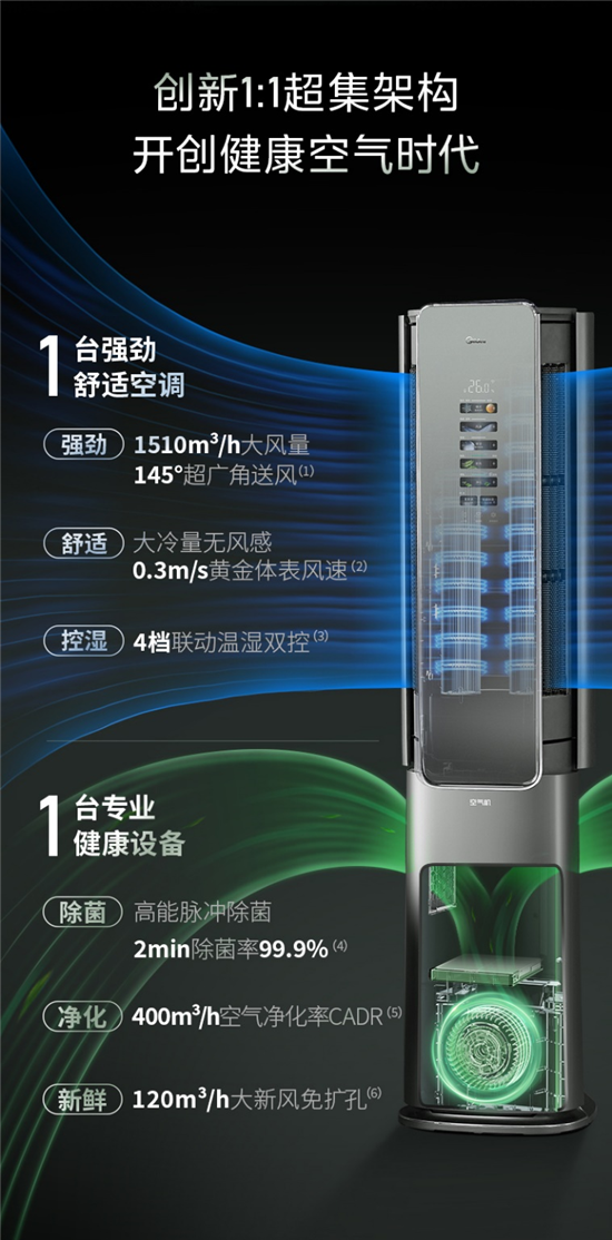 高温难耐,空调无疑是夏天人们的“救命神器”,而随着大众对空气健康的高度关注,人们已不满足于空调的简单制冷制热功能,美的空调从大众亟待解决的痛点立足,推动空调技术和产业的不断更新迭代,于今年推出新品旗舰美的鲜净感空气机,集成空调、新风机、净化器、消毒机、除湿机等多种空气健康设备的核心功能于一体,从人们备受关注的空气“温湿风净鲜”维度出发,给消费者带来清爽健康的夏日体验!