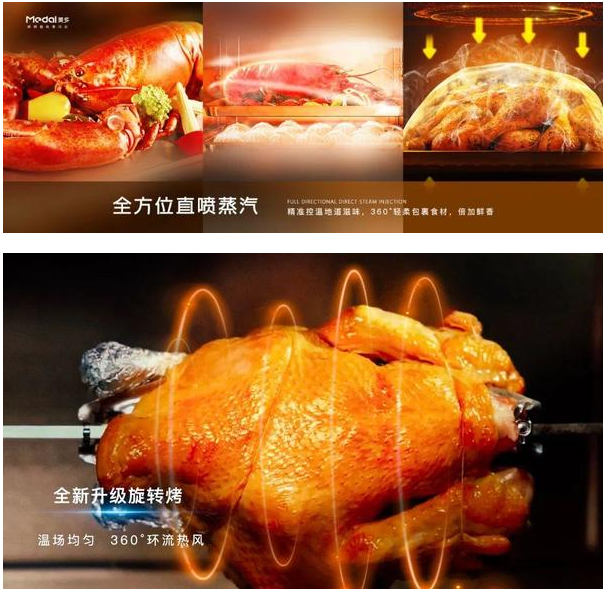 美多F16语音集成灶内置AI智能烹饪曲线、100+智能菜谱,轻松玩转中式烹饪。蒸箱采用了蒸汽直喷技术,大量蒸汽瞬间渗透食物肌底,让菜肴更加鲜美!全新升级的旋转烤模式,模拟人工烤制手法,热风循360°快速渗透食材,在家就能实现烤串自由!空气炸功能通过高速空气循环致使食物脱水,并让表面变得金黄酥脆,给你外焦里嫩的味觉享受。多种烹饪方式融汇贯通,小白也能轻松变大厨。