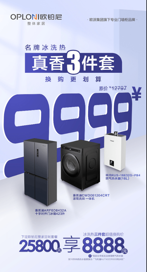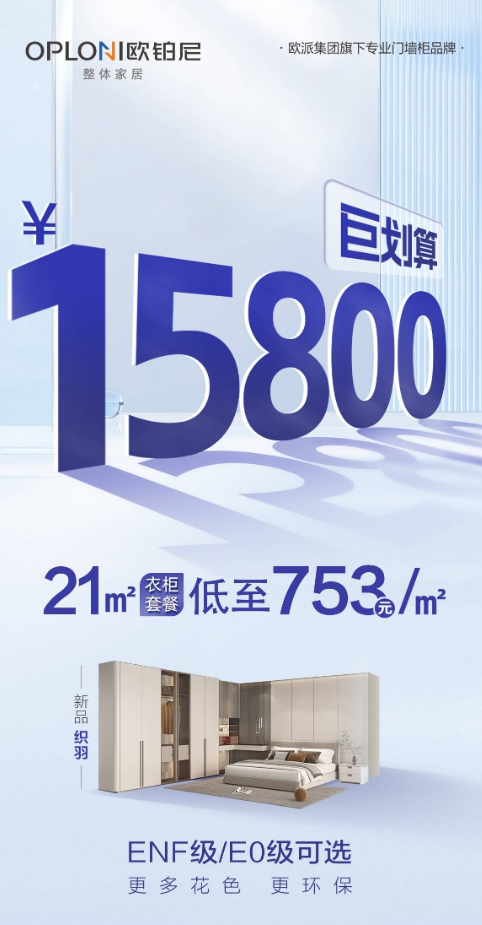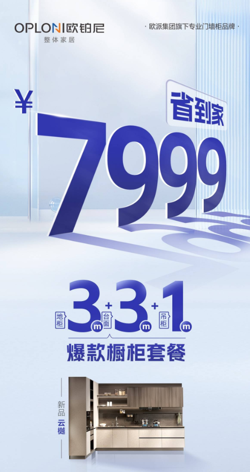 除此之外,欧铂尼通过研究1000+万中国家庭居住需求,潜心打磨“适用优质”的居住体验范本。日前,欧铂尼正式首发整体家居套餐,包括“25800整家定制套餐”、“15800元21㎡超值衣柜套餐”、“7999元7米爆款橱柜套餐”、“9999名牌冰洗热3件套”、“19800家具10件套”等套餐矩阵,一站式满足消费者整屋家装的需求。
