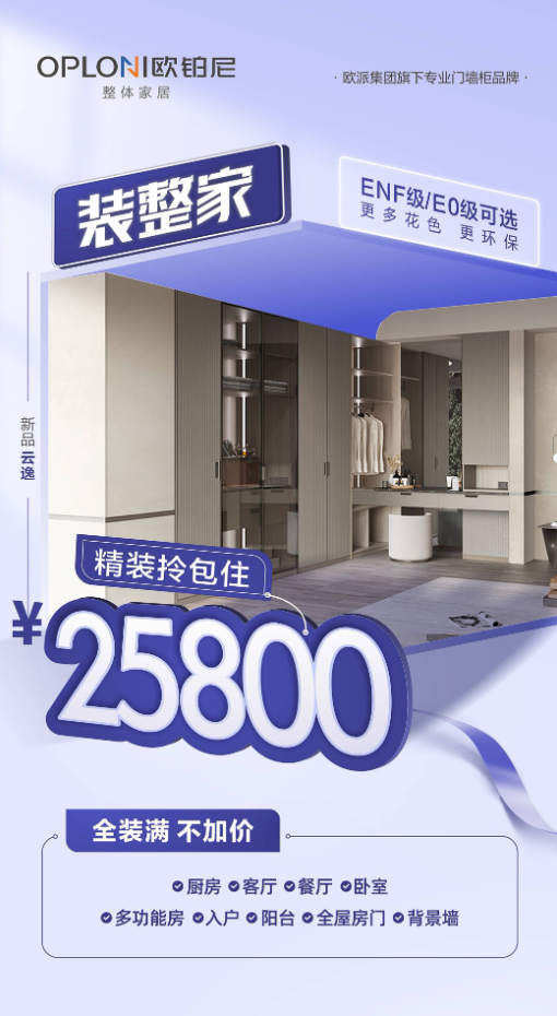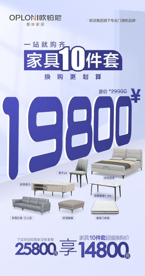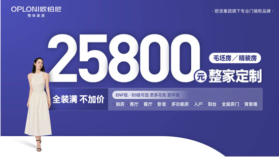 作为整体家居行业的黑马,欧铂尼洞察市场先机,准确把握市场脉搏,通过此次“25800整家定制套餐”,实现门、墙、柜、家具家配一站式全屋配齐的完美融合,是欧铂尼在“大众品牌”新定位下对消费者的惠民让利,让大众感受欧铂尼的专业与品质。