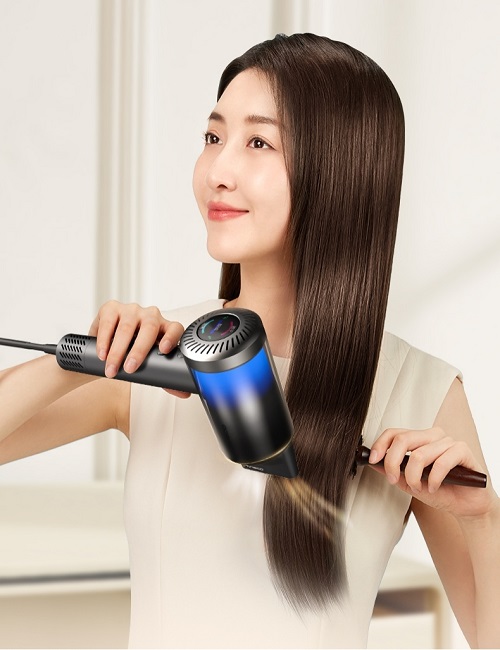 夏天吹头发,温度高了容易出一头一身的汗,年长者也不能用冷风吹,吹久了头发又会毛躁梳不开,一直举着吹风机手臂还酸痛得不行。而摩万2.0在干发的同时更能养护秀发。