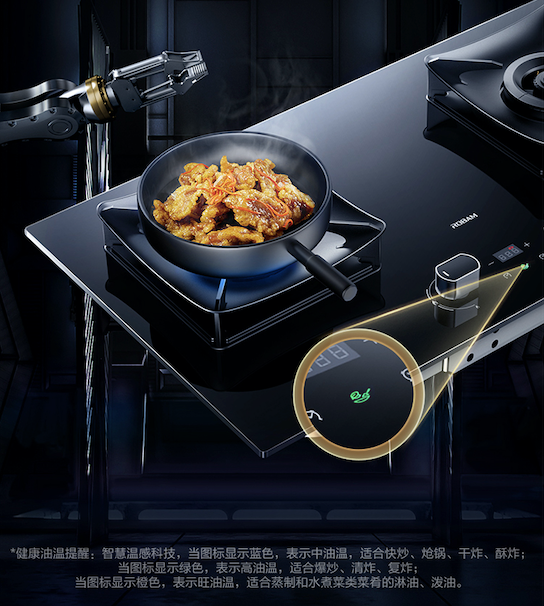 51B0A的精控能力不仅体现在火力、时间方面,更有对油温的控制驾驭。健康油温提醒,精准控制最适合的油温。三档油温提醒,当图标显示蓝色,表示适宜快炒、炝锅;绿色代表高温油炸,适宜爆炒、复炸;橙色代表旺油温,适宜蒸制和水煮菜类菜肴的淋油、泼油,轻松掌控烹饪全局温度。