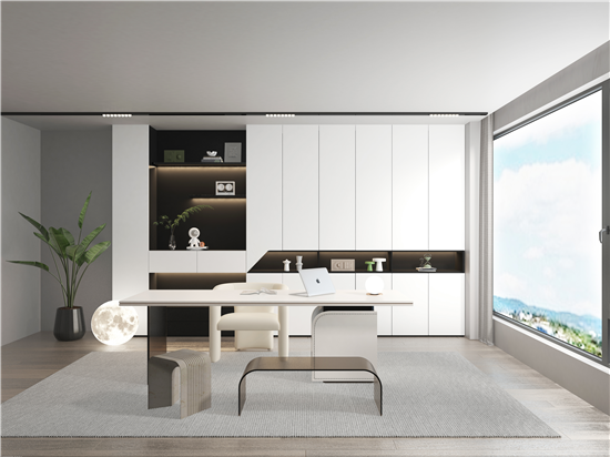 为了更好探寻都市精英们的生活方式,本次新品「自由时光」采用了肤感白、磨砂黑、熔岩灰主色调,渲染了一种简约、自由的空间氛围,同时巧妙延续了原获得过“中国创新设计红星奖”的「自由舰」的设计元素,空间中大量运用“舰”的形状,艺术化“舰”的形态,将“舰”的活力与能量注入空间。板材采用了当下丽博家居主推的亲肤科技板材——丽博丽肤板,透露着由内而外的高级感,自带亲和力,让人们在生活中忘却烦恼,自在舒展,诗意栖居。