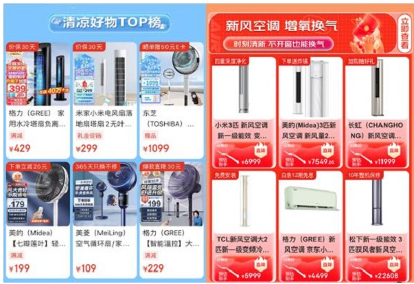 炎炎夏日里,除了传统的空调外,能实现室内室外空气循环,让室内空气持续处于新鲜的新风空调,以及能远距离、大面积搅动室内空气,解决室内憋闷,制冷不均问题的空气循环扇等产品逐渐成为可夏日新宠。根据京东618数据显示,空气循环扇成交金额同比增长超3倍;新风空调、2匹挂机、风管机等趋势品类成交额同比均超150%。京东“清凉节”活动期间,为大家甄选了格力新风空调、小米3匹新风空调、格力水冷塔扇、美的空气循环扇等好物供大家选择。