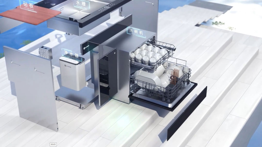 1㎡集水槽、洗碗机、超声波果蔬机、净水器/垃圾处理器(可选配)等功能一体