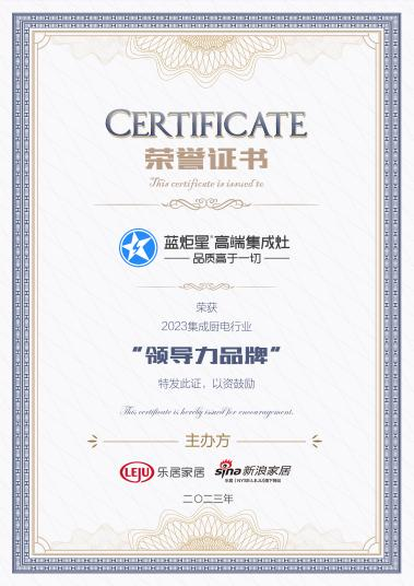 高品质铸就好品牌,高标准引领高质量发展,此次荣获新浪家居“2023集成厨电行业领导力品牌”蓝炬星实至名归!