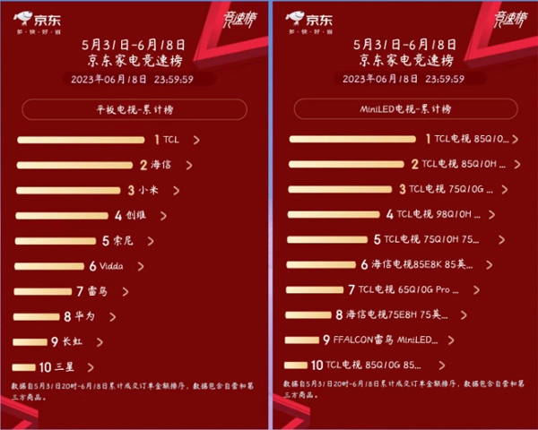 从618电视市场的内卷来看,国内电视整体市场热度仍然很高,各品牌纷纷推出旗舰型号或者进行降价,力图抢占市场份额。在这一激烈竞争的背景下,Mini LED技术显然成为了取胜的关键因素之一。TCL作为国内领先电视品牌,以其卓越的技术实力和产品品质,取得了在Mini LED领域的领先地位。