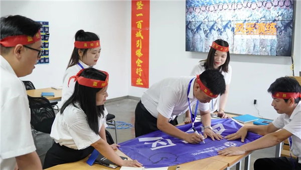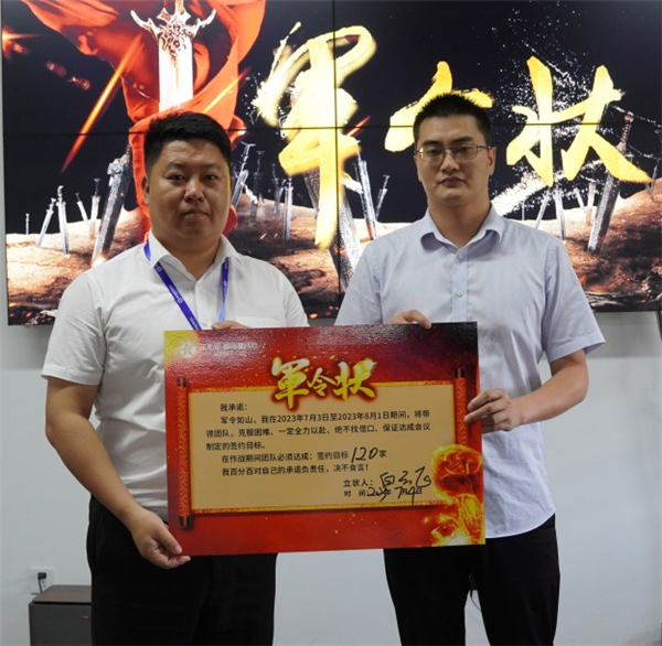 凝心力,拓蓝海 不负期待,共启繁华 在主持人发布的招商作战方案宣贯,对活动方案以及执行激励方案进行了详细的讲解,并公布了目标任务后,各位招商精英们在邹总的带领下,用斗志昂扬的士气立下“军令状”,燃起了全体招商精英心中的满腔热血。