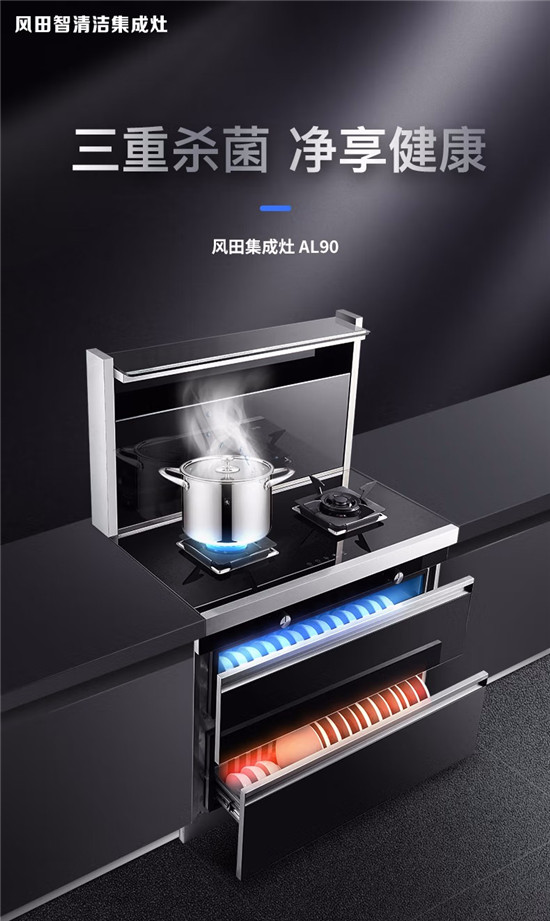 除了消毒柜以外,风田AL90作为集成灶还搭载了强大的烟灶功能。