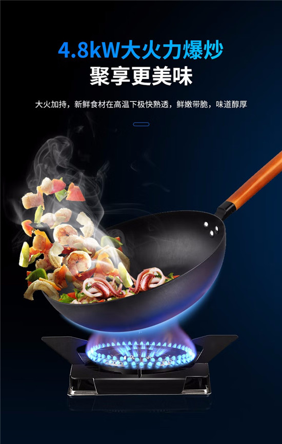 灶具模块拥有4.8KW大火力,家中也能实现爆炒功能,食物鲜嫩带脆,味道醇厚。