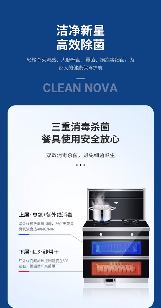 对于特定空间或是指定物品的消毒,我们往往采用喷洒酒精或者是用一些特定消毒液擦拭的措施。但是,餐具与一般的空间和物品完全不同,其使用频次高且相对固定,因为需要入口,也不能用酒精等消毒剂。因此,我们必须要一台专业的消毒设备,比如风田AL90烟灶消集成灶。